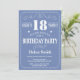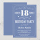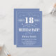 18th Birthday Invitation Blue and White Typography. Blue and White Background. Adult Birthday. Male Men or Women Birthday. Kids Boy or Girl Lady Teen Teenage Bday Invite. 13th 15th 16th 18th 20th 21st 30th 40th 50th 60th 70th 80th 90th 100th. Any Age. For further customisation, please click the "Customise it" button and use our design tool to modify this template.