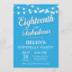 18th Birthday Invitation with String Lights Blue Background. Woman Birthday Party. Eighteenth and Fabulous. Any age. For further customisation, please click the "Customise it" button and use our design tool to modify this template.