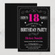 18th Birthday Invitation Hot Pink Black Chalkboard