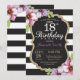 18th Birthday Invitation Women. Floral Gold Black
