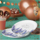 Perfect table decor for a July birthday party. Blue larkspur (delphinium) is the birth flower for that month. It forms a pretty watercolor bottom border on this floral personalised paper plate. The birthday celebrant's name, age and birthdate are placed above it using elegant calligraphy and typography. All text is editable.