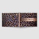Elegant, cool, glamourous and feminine for a 18th birthday party with brown, golden and black leopard print, decorated with golden confetti. Template for a name and age 18. A faux bronze metallic looking band. Black hand lettered style script, letters.