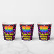 This fun and happy birthday themed paper cup design features a large number “18” having a rainbow spectrum gradient inspired pattern. It also features the message “Happy 18th Birthday,”, and a customisable name. The background features a pattern of red, pink, and purple heart shapes. Cheerful, joyful paper cups like this might be fun to use at a birthday party being held in celebration of somebody’s eighteenth birthday. [~Z0000548]