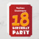 18th Birthday Modern Teen Red Gold Pattern V06A This contemporary design with its red, gold and white pattern and its big and bold text is a fun way to invite folks to an 18th birthday celebration. All text is customisable, so suitable for all teen years or any birthday year you need. You can experiment with different paper types by clicking on the "Invitation Options" tab on the upper right hand corner. I recommend the ice hued metallic paper which gives your birthday invitation a festive shimmer and shine. Trendy!