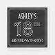 This stylish 1920s/1930s era inspired art deco look birthday themed paper napkin design has a custom name, plus the message “18TH BIRTHDAY PARTY!”. The number “18TH” has a fancy geometric lined look. Paper napkins like these might be used at a birthday party held in celebration of somebody’s eighteenth birthday, or some other 18th event. [~Z0000659]