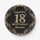 18th Birthday Party Black and Gold Glitter Frame Paper Plate