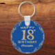 18th Birthday Party Blue and Gold Glitter Frame Keychain. For further customisation, please click the "Customise it" button and use our design tool to modify this template.
