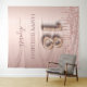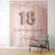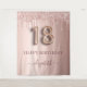 A tapestry for a girly and glamourous 18th birthday party. A rose gold, pink gradient background with elegant rose gold coloured faux glitter drips, paint dripping look. With the text: Happy Birthday. Personalise and add a name. The name is written in dark rose gold with a modern hand lettered style script with swashes. Number 18 is written with a trendy balloon style font. To keep the swashes only delete the sample name, leave the spaces or emoji's in front and after the name. Can be used as a welcome banner, wall decor for the party or as a photo booth backdrop.