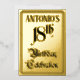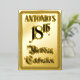 The front of this elaborate eighteenth birthday celebration foil invitation/announcement design features the message “18th Birthday Celebration” in ornate script-style text. It also features a personalised name. The back features personalised details about the event, such as the date, time, venue/location, and any other information that may be important. Fancy, luxurious, editable invitations like these might be used to invite guests to a birthday celebration/party being held in celebration of somebody’s eighteenth birthday. [~Z0000596]