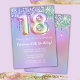 18th birthday party invitation purple pink glitter drips 18th birthday party invitation for a 18 year old girl with modern script writing and fun foil balloons.