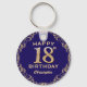 18th Birthday Party Navy Blue and Gold Glitter Frame Keychain. For further customisation, please click the "Customise it" button and use our design tool to modify this template.