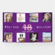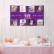 Welcome to a 18th birthday party for a girl, celebrating her life with a collage of 8 of your own photos. Photo of family, friends, pets, vacations. Templates for a name, age 18 and a date. With the text: Welcome (x2) White and pink coloured letters. Elegant purple background.