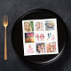 A napkin for a girly 18th birthday party, celebrating her life with a collage of 8 of your photos. Templates for a name, age 18 and a date. Date of birth or the date of the party. Coral and burgundy coloured letters. White background.