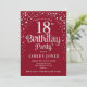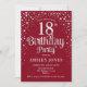 Elegant design in red and faux glitter silver. Features stylish script font and confetti. Message me if you need custom age.