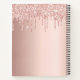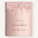 A notebook for a girly and glamourous 18th birthday. A faux rose gold background with an elegant faux rose gold glitter drips, paint drip look. The text: The name is written in dark rose gold with a large modern hand lettered style script. Tempate for a date and age 18. Perfect as a birthday party guestbook or for party planning and organising.