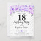 18th Birthday Party - Silver Purple Flowers Invitation