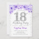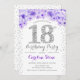 18th Birthday Party - White Silver Purple Invitation