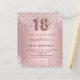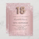A modern, stylish and glamorous invitation for a girl's 18th birthday party. A dusty rose, pink metallic looking background with faux glitter drip, paint drip look. The name is written with a modern dark gray colored hand lettered style script. Personalize and add your party details. Number 18 is written with a balloon style font, script.