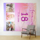 For a 18th birthday party. A collage of 3 of your photos of herself friends, family, interest or pets. A purple, pink and rose gold coloured gradient background. Decorated with faux glitter drips. Personalise and add her name, age 18 and a date. Date of birth or the date of the birthday party. Purple coloured text. Perfect for a surprise party! Use as a welcome banner, wall decoration or as a photo booth backdrop.