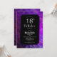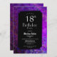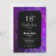 A black 18th birthday party invitation featuring a vibrant purple-painted frame.
