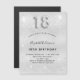 A modern, stylish and glamourous invitation magnet for a 18th birthday party. A faux silver looking background, decorated with glitter sparkles. Personalise and add your name nad party details. Number 18 is written with a balloon style font, script.