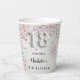 For a glamorous and girly for a 18th birthday party. A faux silver looking background. On the front and the back: Personalize and add a name, and a date. Decorated with pink and faux silver glitter dust. Number 18 is written with a balloon style font.