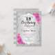 18th Birthday Invitation. Elegant floral design in silver and pink. Features faux glitter silver stripes, pink roses stylish script font and confetti. Perfect for a glam birthday party.