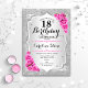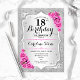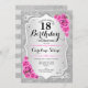 18th Birthday - Silver Stripes Pink Roses Invitation