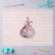 Dancer from the 18th century against a background of pink and a musical sheet in white by Mozart (Fantasia).