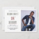 18th Photo Birthday Party Invitation. Gather friends and family to celebrate a special someone on their birthday with this 18TH PHOTO BIRTHDAY PARTY INVITATION. Designed with the your favourite image on the right and event details on the left. The text includes: You're Invited To, The Name, 18th Birthday, The Date, Time, and Location. The reverse text includes: Additional Event Details, along with RSVP info on a grey background.