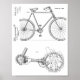1900 Vintage bicycle US patent technical design illustration. Chainless gear driven bike. With close up in the gear drive.