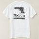 Light-coloured T-Shirt with III Arms logo on front pocket area and mechanical drawing of M1911 on the back.