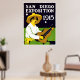 Vintage poster promoting the San Diego California Exhibition of 1915. More often referred to as the Panama - California Exposition, which celebrated the opening of the Panama Canal. The expo ran from March 9, 1915 through January 1, 1917. The poster features a young Californian boy playing a guitar.