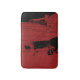 Black silhouettes of 1920s fashion models against a textile effect red curtain background.