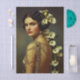 Art Nouveau Inspired Vintage Portrait of a Woman with Calla Lily Floral Arrangement and Antique Gold Embellished Gown, muted sage and taupe background, elegant romantic artwork for decoupage and furniture upcycling. This refined portrait features a poised young woman turned gently over her shoulder, her expression calm and self-assured. Her dark hair is styled in a smooth vintage wave, adorned with sculptural ivory calla lilies that cascade elegantly down her back, creating a dramatic vertical floral line. She wears an intricately detailed antique gold gown with delicate chain draping, pearl accents, and Art Deco-inspired embellishments. The soft sage and muted taupe background enhances the creamy tones of the lilies while complementing the warmth of the gold detailing. The overall aesthetic blends Art Nouveau romance with early 20th-century glamour, resulting in a graceful yet striking design ideal for elegant creative applications. Artwork similar to a digitally enhanced oil painting with soft-focus vintage portrait influence and subtle fine art texture……PERFECT FOR: Decoupage, furniture decoupage, furniture upcycling, statement drawer fronts, cabinet panels, decorative boxes, journal covers, mixed media canvases, Art Nouveau décor projects, romantic interiors, bridal themed crafts, gallery wall art, layered collage compositions, and elegant gift wrap designs..…... 🖤 NOTE 1. This design is available in two options: Left and Right. You can find them in the Collection shown below. If they don’t appear there, try searching for their unique identifiers: EZ7L for the Left design and EZ7R for the Right version….🖤 NOTE 2. The 18 lb tissue is a great choice if you like a little extra strength—it's easier to handle, resists tearing and allows for gentle repositioning. It’s also more opaque, making it perfect for darker surfaces. The 10 lb tissue is wonderfully lightweight and flexible giving you that smooth, blended finish. It’s ideal for layering on furniture or smaller projects so treat it gently and it will reward you with stunning results!.….🖤 NOTE 3. All items with this particular design share my unique identifying “Letter/s Number/s” label in the title for easy searching. …..🖤
