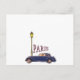 A vintage illustration of a 1920's automobile and lamp post. Text reads: "Paris".