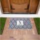 Modern geometric white art deco arrows pattern doormat with your personalised monogram letter and family name in black.