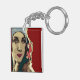 1920s Lady in a Blue Hat Pop Art Key Ring