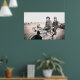 Poster showing a 1920's photo of men riding a vintage motorcycle