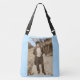 It's very roomy. The fabric is soft and flexible, and the strap is wide and adjustable to fit across the body. The printing is true to the photo.