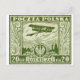 1925 pale green 20gr Polish Airmail Stamp. The first airmail stamp design from Poland depicting a System Schneider biplane over the city of Warsaw, Poland.