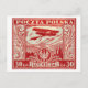 1925 red 30gr Polish Airmail Stamp. The first airmail stamp design from Poland depicting a System Schneider biplane over the city of Warsaw, Poland