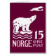 The 1925 Norwegian 15 Ore Air Mail postage stamp. The stamp features a Polar Bear on an ice sheet watching an aeroplane delivering mail. This design is available in dark blue, white and a light blue.
