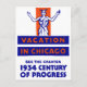 Vintage print promoting travel to Chicago in 1934 to view the city and The Century of Progress international Exposition. The expo or world's fair was held to celebrate the centennial of the city.