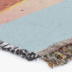 A quality printed throw has its advantages. This is a much finer weave throw than its loopier cousins, and though lighter, it is worth the investment for custom room accessorizing. The back is much prettier than the typical brown, and the fringe on the long sides very vivid, the selvage nicely done. Before photographing, I washed the throw in cold water, delicate, with a thicker woven throw the same size. On tumble dry low, this throw was dry in half the time as the other. This is a very practical quality if you use throws for furniture covers or to wrap up in frequently. The sleekness of the fabric makes it a great layer for accenting or protecting without the feeling of sitting on too much stuff. Perfect for napping or when you feel a light chill coming on. The color printing is beautiful and on this fabric, matched the design and color of my Photoshop image. This is an advantage for blending room fabrics and colors. The fringe on the short sides prints the colors from the design image and therefore varies from the side fringe. I streaked a white fractal line through the plaid pattern to give the illusion of weaving. This printed as crisp as an illusory thread, and put some white in the short side fringe, showing another advantage of print vs loomed- for artistic purposes, line lines, detail, and color integrity can be planned and preserved. My loomed throws have color limitations and more of a needlepoint texture. Print throws reproduce an exact image. The throw felt a little stiff straight out of the package, but this went away in the first delicate wash. Of course I searched the wash water for ink or bleeding and there was none.