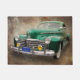 A photograph of a beautifully restored green vintage car.