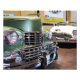 Vintage antique autos on display at the Saratoga auto museum. A 1948 green Lincoln and a white 1953 Buick Skylark.
