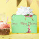 Christmas as it looked like in the 1950's with this retro artwork of a lady all dressed up in hat and full skirted dress in glittery red and green.