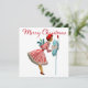 Christmas as it looked like in the 1950's with this retro artwork of a lady all dressed up in a full skirted dress in red and green holly.