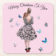 1950 Woman with Butterflies Christmas Greeting Square Paper Coaster
